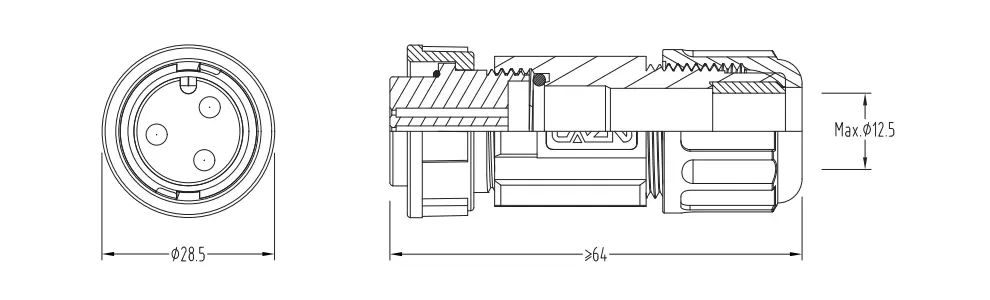 Enchufe instalable en campo hembra recto E16 (bayoneta) | 3 | E16B-S3-PWA12.5 | ||