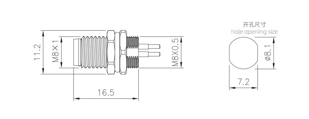 Conector hembra de montaje frontal macho M8, pin 8A | M8x0.5 | tarjeta de circuito impreso | 8A | M8-P8A-GPB M8 |