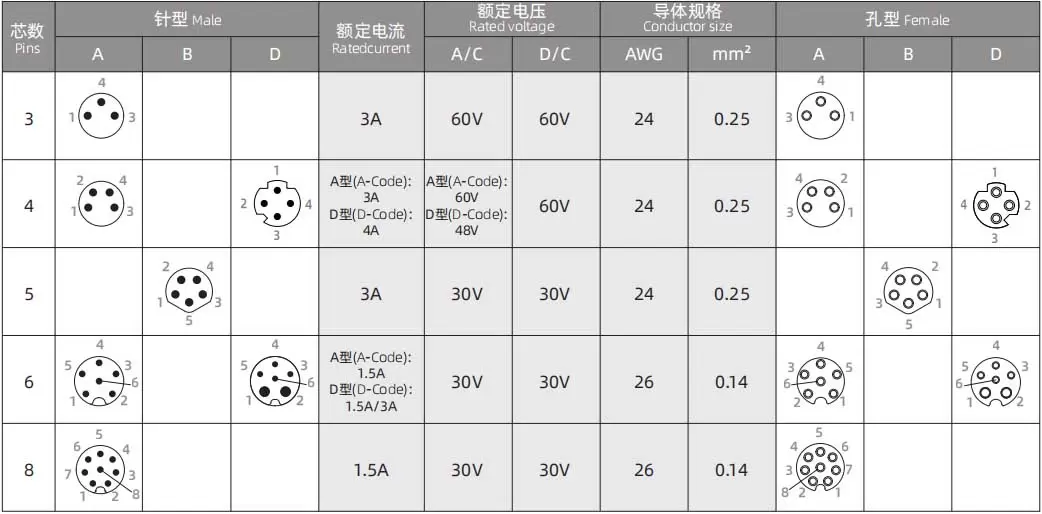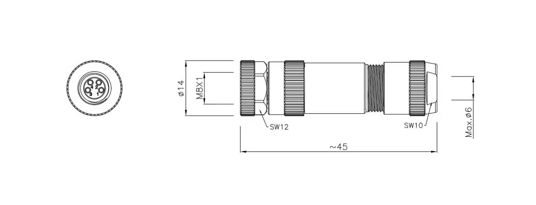 Estándar europeo Conectores Serie M8 Tipo de estructura: Enchufe recto ensamblado en metal Tipo de clavija: Tipo hembra Número de contactos: 3, 4 clavijas, Método de conexión: Tornillo Blindaje: Sí Certificación: CE, RoHS, UL, Estándar: IEC 61076-2-104